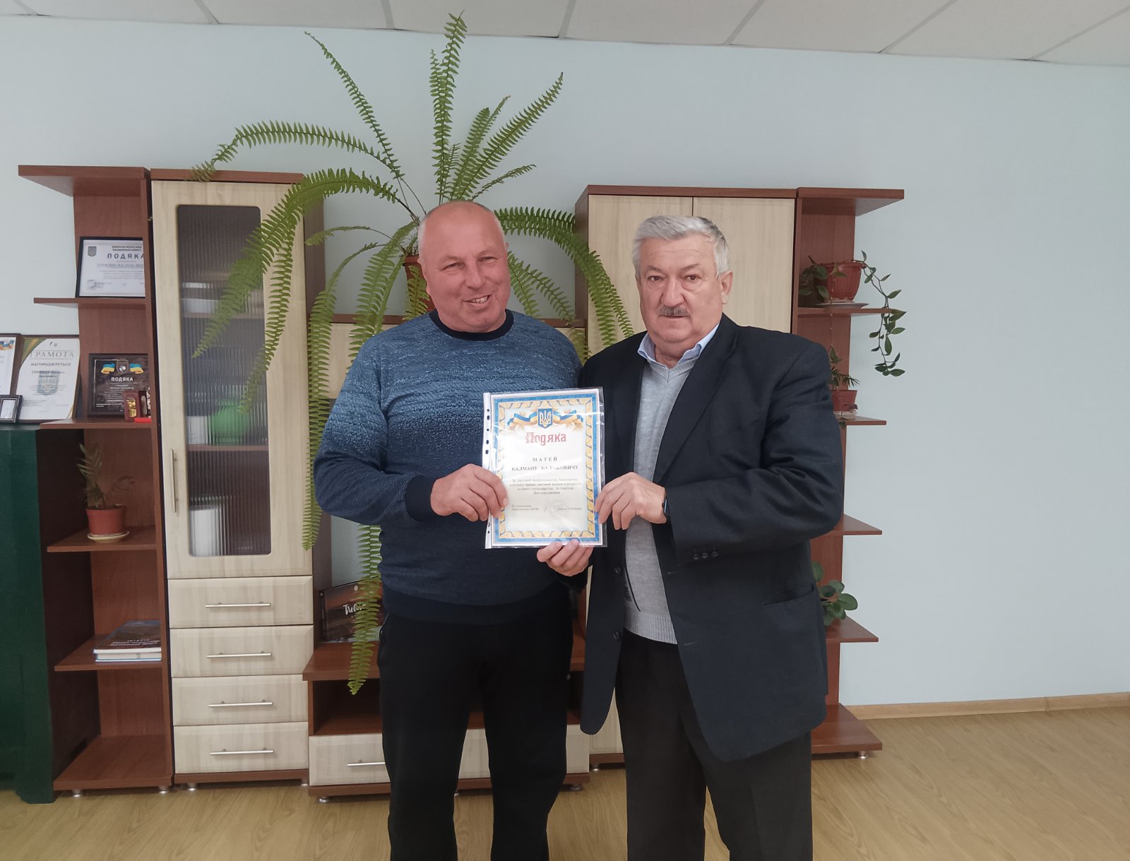За високий професіоналізм, багаторічну сумлінну працю, вагомий внесок у розвиток водного господарства та з нагоди дня народження М.Калману була вручена подяка від в.о.начальника Берегівського МУВГ – Василя Турянина.