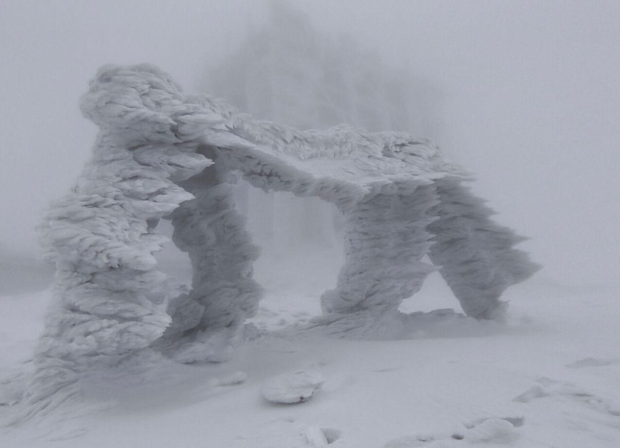 У квітні в Карпатах вирує справжня зима. На горі Піп Іван хмарно, туман, вітер східний 18 м/с. Посеред весни вдарив мороз, а гори замело снігом, повідомили у Facebook рятувальники Прикарпаття.