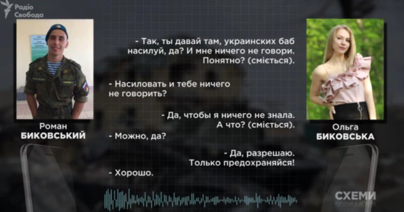 У розмові, якуперехопили 12 квітня, жінка, сміючись, заохочує чоловіка-загарбника “ґвалтувати українських баб”. Військовий РФ, у минулому строковик Росгвардії, також служив у полку, який брав участь в окупації Криму.