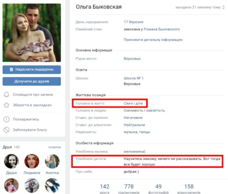“Сторінка Романа закрита, а от його дружина ще донедавна активно користувалась соцмережею. У неї є діти – у 2017 році вона стала мамою, про що повідомила публічно. І хоч Ольга переважно демонструвала “цивільне” життя чоловіка, у 2016 році вона все ж запостила його фотографію із радісним – “дочекалася”. Вочевидь, зі служби”, – зазначили журналісти.