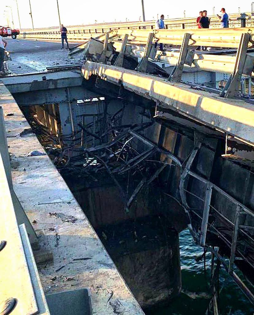 “На міст були великі навантаження, оскільки через нього щодня перевозили велику кількість важкої техніки російської армії та її особового складу. А версії про те, що за цим руйнуванням Кримського мосту стоять Збройні сили України або українські спецслужби, мають бути доведені. Навряд чи ця версія на сьогодні відповідає дійсності, тому що українські військові не будуть бити по тому об’єкту, де знаходяться цивільні”, – додав він.
