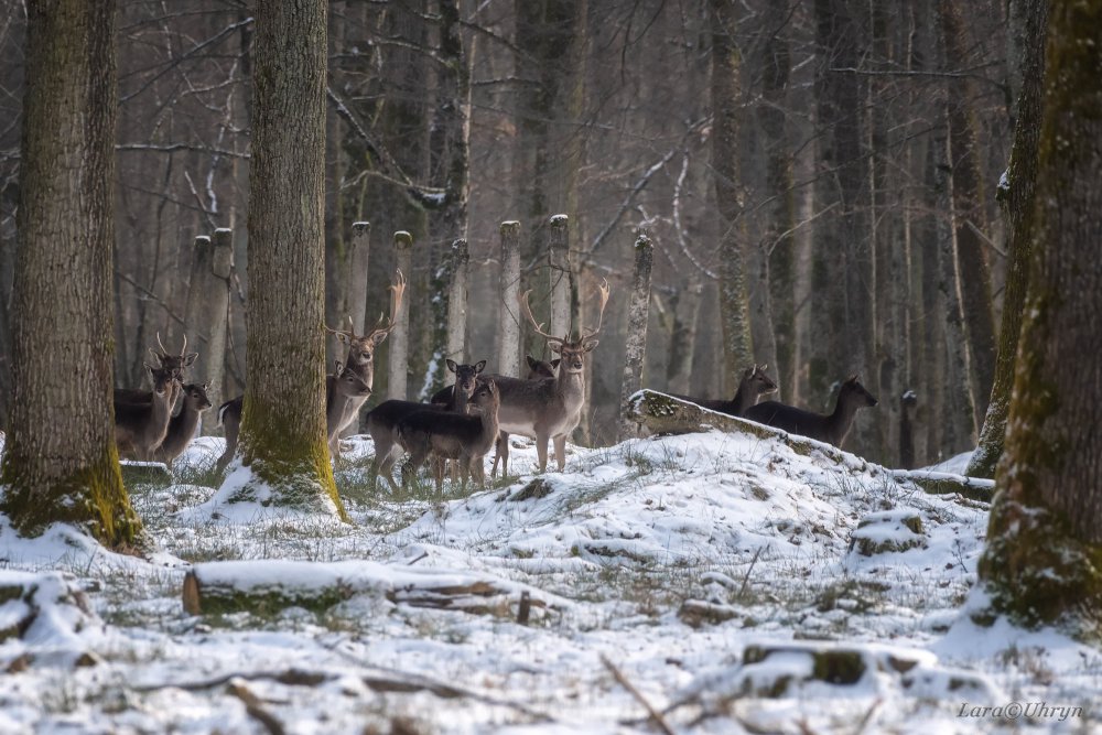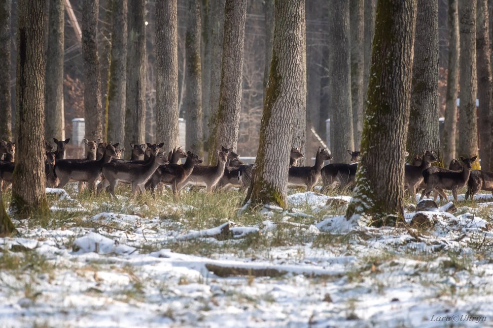 “На фотосафарі в селі Горбок Мукачівського району я їхала, знаючи, що серед стада, що нараховує понад 100 голів, є 1 лань, яка відрізняється від усіх. Вона альбіноска, тобто має білу шерсть. У природі альбіноси, як правило, не виживають, але тут в стаді вона почувається просто чудово! Щоправда, впіймати у кадр одну-єдину особину зі 100 зовсім непросто. Тут найголовніше – удача і наполегливість. Олені лякливі і біжать всім стадом в одному напрямку. Фотографуватись не хочуть, але мусять. Інколи “зависають”, коли їм потрібно провести складні математичні розрахунки маршруту втечі так, щоб не бути сфотографованими”, – розповіла Угрин.